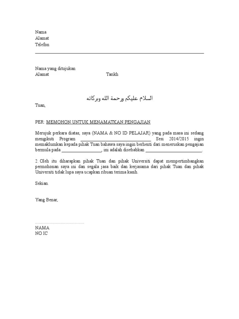 Surat Berhenti Sekolah In English - Contoh Surat Berhenti Sekolah Menengah Otosection